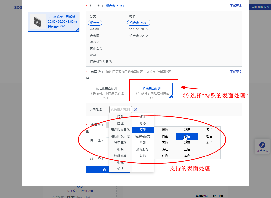 3. 選擇加工工藝,并上傳圖紙