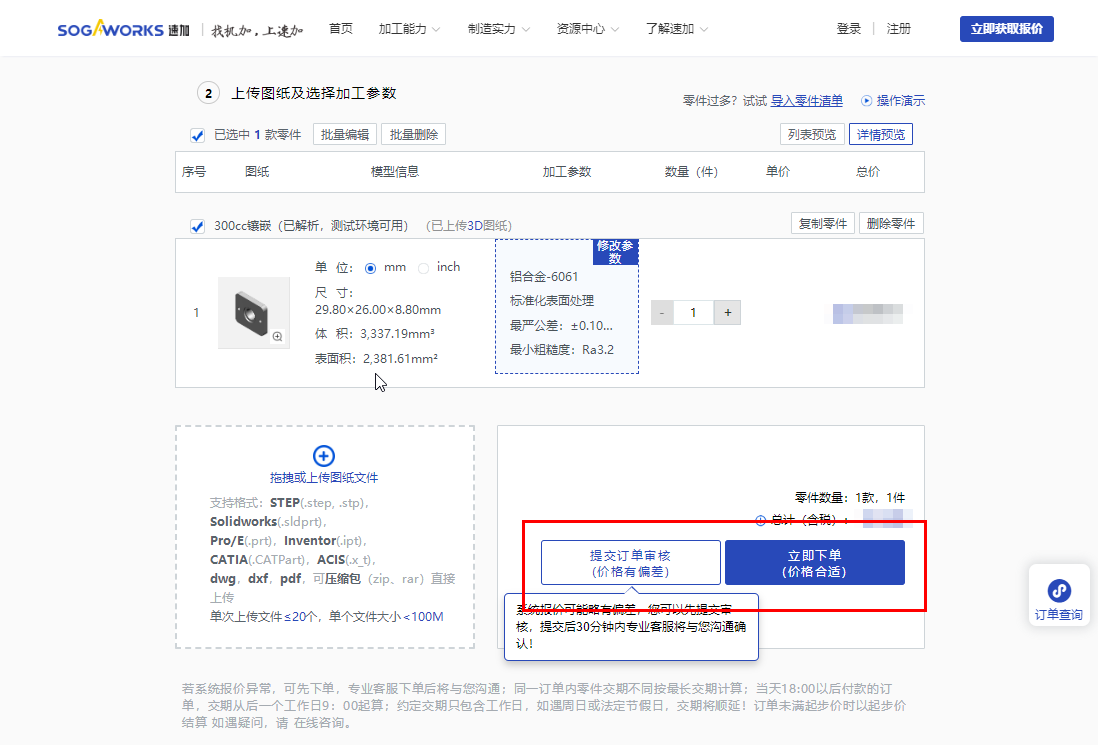 如有價格,可點擊【提交訂單審核】或【立即下單】提交詢價單