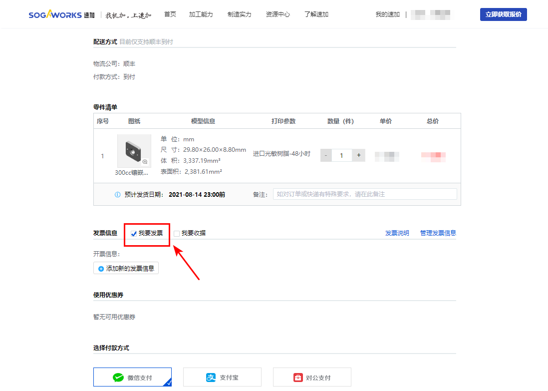 速加支持開(kāi)具紙質(zhì)發(fā)票和電子發(fā)票。紙質(zhì)發(fā)票可隨貨郵寄給您,也可以單獨(dú)郵寄給您。您可在傳統(tǒng)詢(xún)價(jià)時(shí)選擇相應(yīng)的發(fā)票方式。