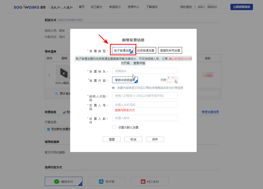 6.1 如您勾選【電子普通發(fā)票】,則速加默認(rèn)為您開(kāi)電子發(fā)票,電子發(fā)票您可在后臺(tái)下載