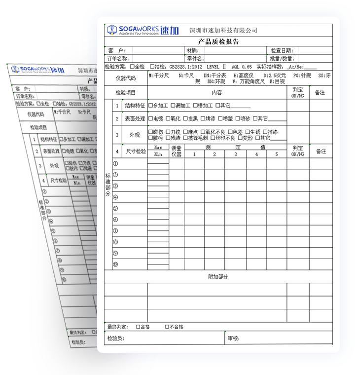 速加設(shè)有專業(yè)質(zhì)檢團(tuán)隊(duì),確保零件品質(zhì);對加工完的零件,發(fā)貨前進(jìn)行100%全檢。確保滿足您的要求。